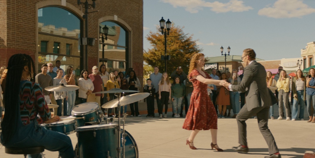 于是,他漂荡地邀请舞伴,凭借一支丽都的跳舞,技惊四座。这一桥段也与影片的第二幕“街头艺东说念主万岁”形成了玄妙的呼应。