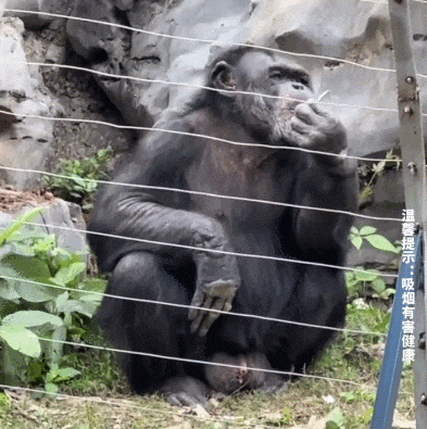 ???????还有旅客给南宁动物园网红“丢那猩”丢点火的烟草,让它学会吸烟?