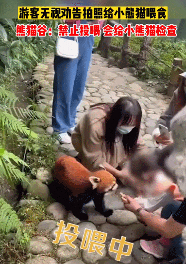 四川成齐,小熊猫谷也庇荫投喂,但是有些旅客非不听,偷藏食物带进去,以至有家长带娃给小熊猫喂零食,不听劝,还笑嘻嘻拍照,修养在哪儿?