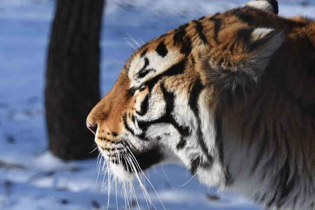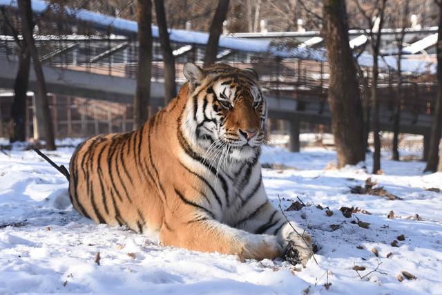 这里的冬日鹤苑宛如水墨长卷,丹顶鹤、白枕鹤等有数鹤类或优雅伫立,或舒展羽翼翩跹起舞,成对的鹤侣在雪地中慢步前行、对鸣传情,奏响冬日里的当然乐章。狮虎散放区内,“森林之王"东北虎身披黑金相间的丽都外相,或卧雪休憩或巡山溜达,虎爪轻拍树木时积雪簌簌落下,尽显王者威严与冬日田地。