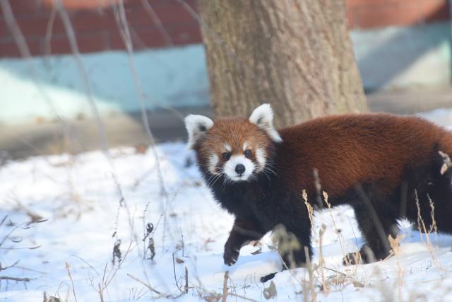 鹿苑中,马鹿情侣并肩而行,雪花落在它们的外相上宛如缀满钻石,雄鹿挺拔的鹿角在白雪衬托下更显俊朗,用优雅姿态书写着冬日恋歌。而红色的小熊猫则带着细碎雪沫穿梭林间,黑亮的眼睛透着懵懂,清翠身影如同冬日暖阳,调停东谈主心。