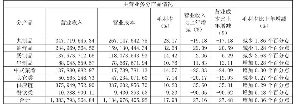 受冻品市集竞争浓烈和学校团餐市集策略变化的影响,公司主买卖务收入减少5.16亿元,导致主买卖务毛利润减少8590.07万元;公司春联营企业和趋奉企业的投资收益减少987.37万元;钞票减值损失加多861.61万元。
